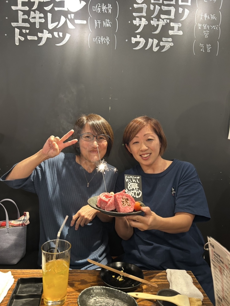 代表の大網と管理者の廣瀬、そして家族も一緒にお祝いに焼肉屋さんへ行ってきました。